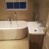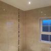New ceiling with spotlights, extractor fan and chrome radiator.